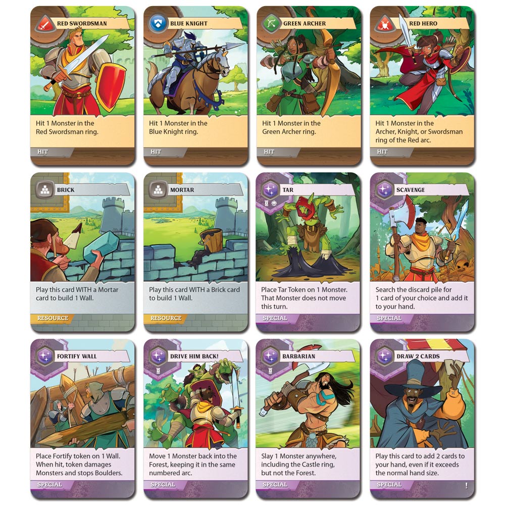 You and your friends must work together to protect your Castle, in the center of the board, from Monsters that attack out of the forest, at the edges of the board. Trade cards, attack and slay Monsters, and plan strategies together to keep your Castle towers intact. You either win or lose together, but only the player with the most victory points will be the Master Slayer.