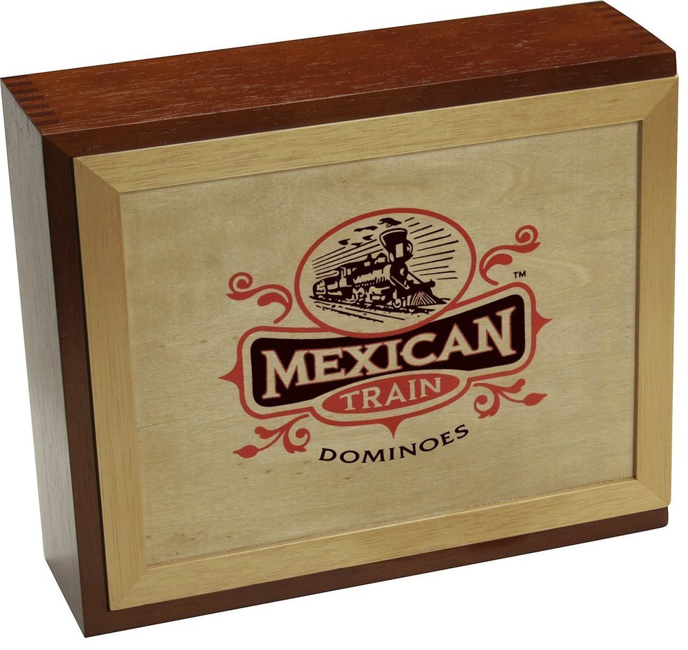 Mexican Train Dominoes, referred to by many as Trains, is a popular dominoes game where players work to dispense all the dominoes in their hand by playing them onto one or more chains (or trains) emanating from the central hub station. Front Porch Classics Mexican Train Dominoes feature the finest materials including an elegant wooden box.