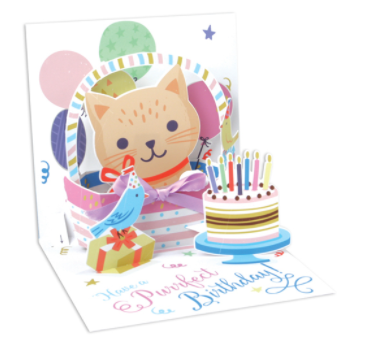 The "purfect" birthday card for any person in your life. With a 3D design featuring a kitten, birthday cake and birthday well wishes it will surely please the birthday girl or boy.