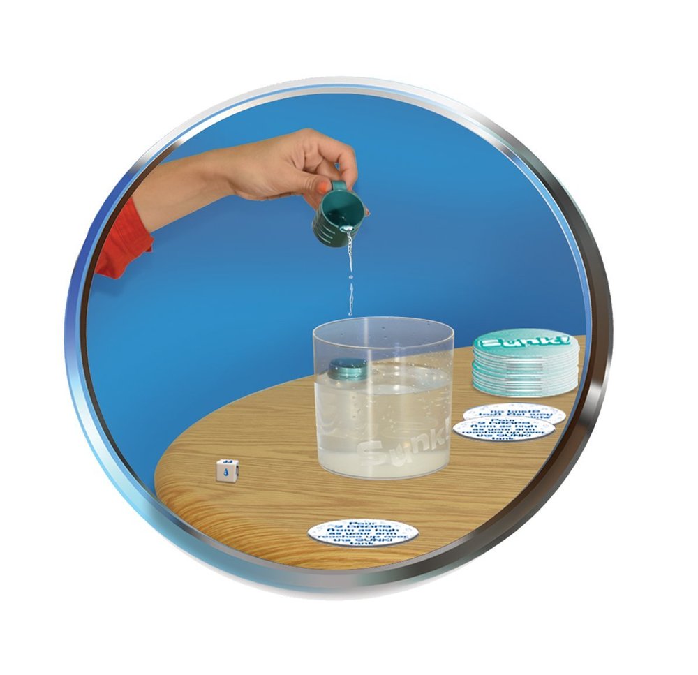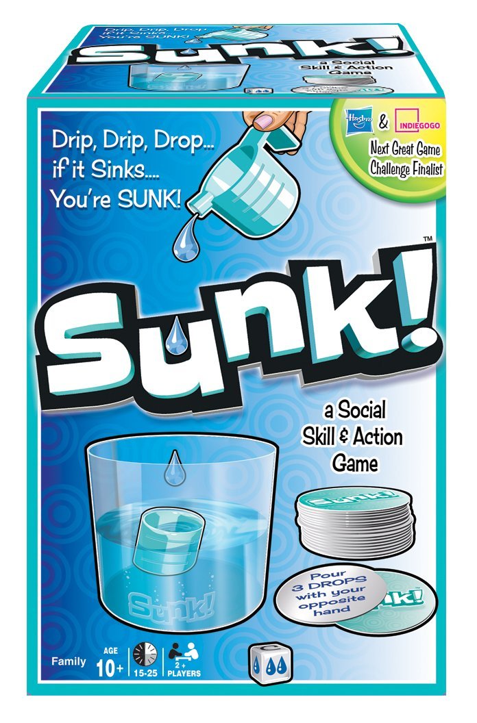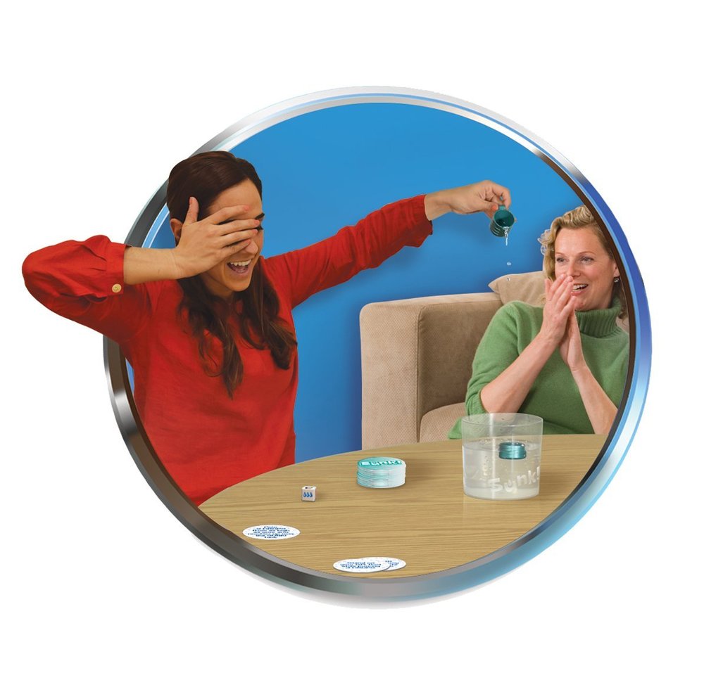 Skill, action, tension, concentration, silly stunts, sabotage, hilarity & fun….sunk! has it all. Ready? steady? pour! whatever you do, don't sink the cup! the goal is to add water - one drop at a time - to the cup that's floating in the water-filled sunk tank, without causing the cup to sink. Sounds simple? it is until you add in a few extra factors. What if your hand is a little shaky? or, your concentration breaks as your opponents taunt you in their attempt to make you sink the cup? or, you roll a challenge and need to hop on one foot or close one eye while you carefully pour two drops? the tension rises and you'll need keen concentration as you carefully drip, drip, drip water from the tiny pitcher into the cup. The last player standing (or should we say floating) is the sunk! champion. Contains clear acrylic sunk tank, plastic float cup, plastic water pitcher, special die, set of challenge cards and instructions.