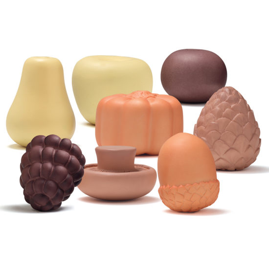 This exquisite set of sculptures cry out to be touched, held, and enjoyed. Their tactile nature is an invitation to sensory play; the mixture of shapes and textures gives good feedback to touch, as does the weighty feel, as the forms are made of a stone composite. Ideal to enrich sensory experiences, these calming sculptures fit snugly and reassuringly in a child’s hand. They are durable enough to be played with outside, including in sand, soil, mud, and water. They can be sorted and classified by different attributes, including colour, shape, and texture, leading to valuable discussion and vocabulary development. Comparisons with their real-life counterparts can lead to work on habitats, whether they are a safe food source and, if so, for who or what. This can lead to expeditions to find them in your local environment or shop and attempts to grow the edible ones in your setting for salads or soups.
