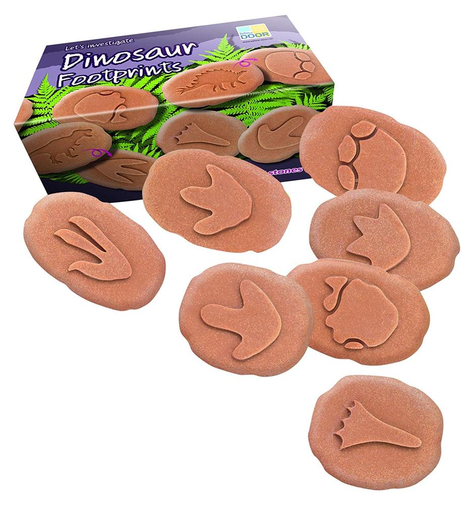 Each of these 8 double-sided stones have a raised footprint of a Dinosaur on one side and an image of the Dinosaur indented into the other. Press the footprint into the sand, mud or soil and create a trail for children to follow.