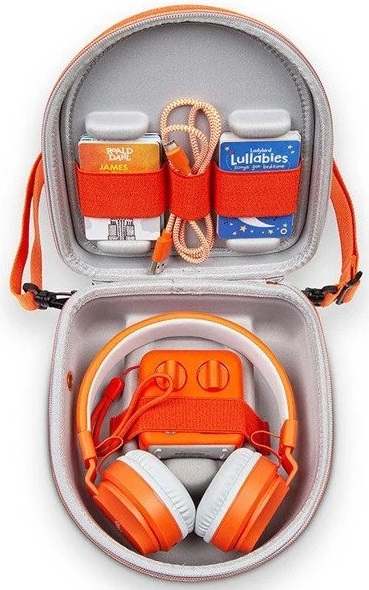 Our hard-shell Travel Case has dedicated space for a Yoto Mini, a cable, kids’ headphones and up to 30 Yoto Cards. It also has an adjustable shoulder strap suitable for over-the-shoulder or cross-body wearing.