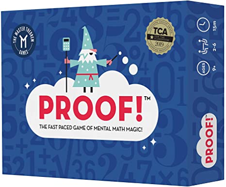 Proof! is an award-winning, fast, fun, and addicting math game that the whole family can enjoy! Work that mental math magic as you race to find creative equations hidden among nine number cards. Keep what you find and collect the most cards to win!